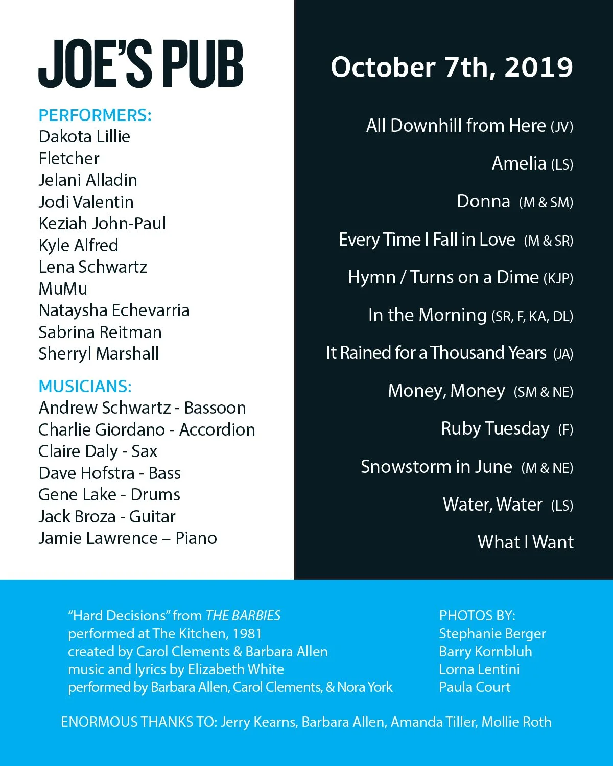 Design for cards placed on the tables at Joe’s Pub for the album release concert of SWOON in 2019.